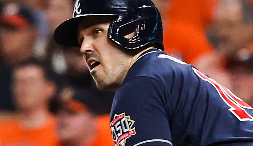 In the ninth inning, Austin Riley flew out to the left-field wall with Brooks Raley on the mound. Eddie Rosario ground out to third. Duvall struck out to end the half. With last licks on the line for the Astros and Will Smith the Braves closer on the mound, pinch hitter Aledmys Diaz walked. Then, Jason Castro hit into a force out. Then, Jose Altuve hit into another force out. Finally, Michael Brantley, with two outs and the game on the line, ground out to second to end the game.