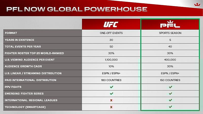 Getting to the level of the UFC is going to take a lot of time and effort. It’s not enough to just have an extremely talented roster which the PFL does have especially after the Bellator acquisition. It’s the full package which includes selling out bigger venues, having pristine production, and building a very loyal fanbase.