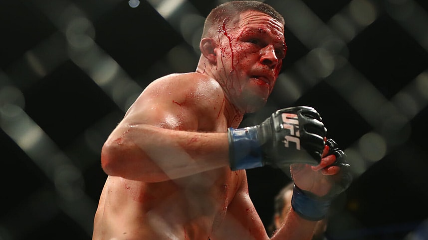 Ferguson lands a big leg kick but Diaz is walking right through it. Hook to the body lands for Ferguson. Jab from Diaz. Ferguson shoots for a takedown and gets it. However, he lands right in guillotine of Nate Diaz. It’s deep and Ferguson taps. Huge win for Nate Diaz.
