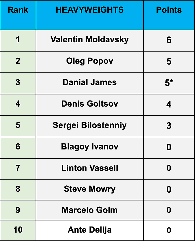 After the first round, here are the standings for the heavyweight division: