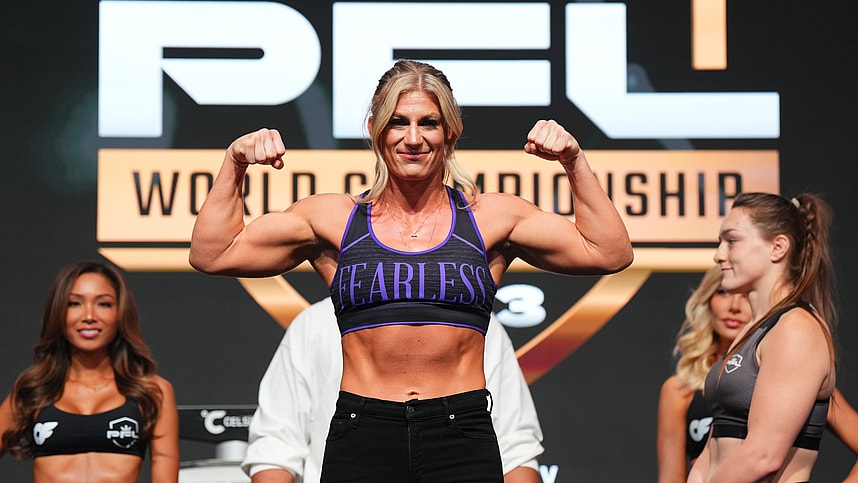 The PFL World Championship bout kicked off with both ladies running to the center. Both throw hooks and neither lands. Huge left straight lands for Harrison. Another left hand from Harrison and now a combination from Ladd. Ladd pushing forward and Harrison throws a kick.