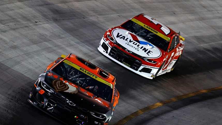 Larson’s No. 5 Hendrick Motorsports Chevrolet passed Kevin Harvick with four laps to go in Saturday’s Bass Pro Shops Night Race to earn his series-best sixth win of the season. His pass came as the playoff standings shuffled thanks to several late-race calamities, including a get-together between Harvick and Larson’s HMS teammate and defending Cup champion Chase Elliott.