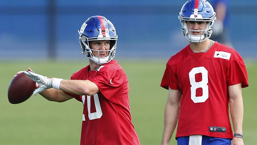 Eli Manning is on ?at today’s practice.
