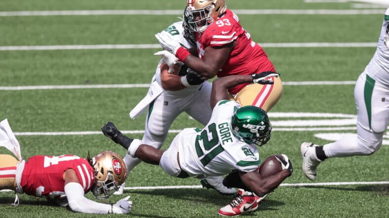 But the single-back option with Josh Adams in to was highly ill-advised. Not only has Gore proven himself reliable in short-yardage situations in his advanced age, but the single-back formation with no wall in front of Adams proved costly. The days of Richie Anderson and Tony Richardson are long gone, but the Jets effectively used tight end Trevon Wesco in a role similar to a fullback at several points last season. Providing no protection to Adams allowed an immediate San Francisco invasion that more or less shifted momentum permanently.