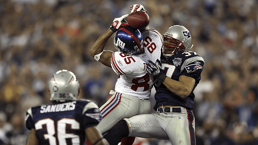 Yet another perfection stopper, Tyree was originally chosen for his special teams prowess. The Livingston, NJ native and Montclair High School alum blocked six punts at Syracuse prior to his Giants selection. He later went on to reach the 2005 Pro Bowl as a specialist. Though never earning more than 19 catches in a season, he earned perhaps two of the biggest catches in Super Bowl history in the 42nd edition against the 18-0 New England Patriots. Prior to his renowned helmet catch, Tyree caught Eli Manning’s first scoring throw, a five-yard strike earlier in the fourth quarter.
