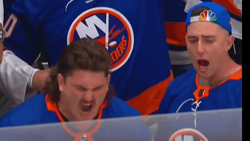 Feeney, signed by the New York Jets as an offensive line free agent, has gone viral for his raucous celebrations of Islander goals. He and his new offensive teammates have been frequent guests at Nassau Coliseum as the Islanders sit nine wins away from their fifth championship.