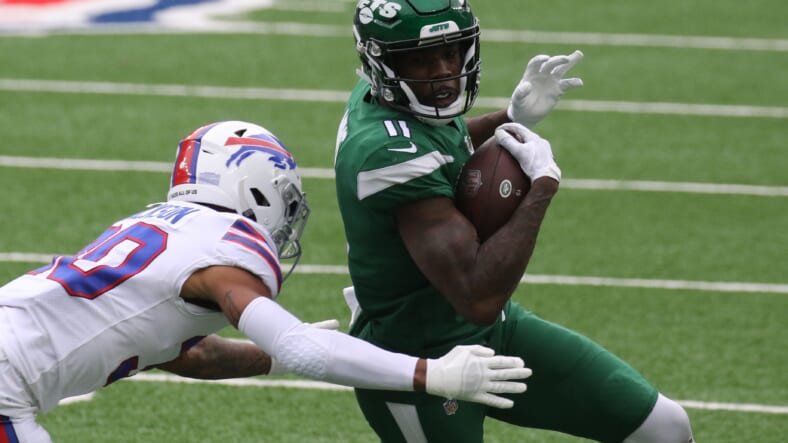 One thing that’s really unfortunate about Mims’ situation is that he will forever be connected to a fellow member of the green draft class of 2020. When the Jets drafted Mekhi Becton with the 11th overall pick…Joe Douglas’ first at the helm of general manager…it came at the price of passing on considerable receiving talents (i.e. Henry Ruggs, Jerry Jeudy, CeeDee Lamb, eventual Rookie of the Year Jerry Jeudy). But those concerns were supposedly alleviated when the Jets when Douglas and Co. were able to snag Mims out of Baylor in the early stages of the second round.