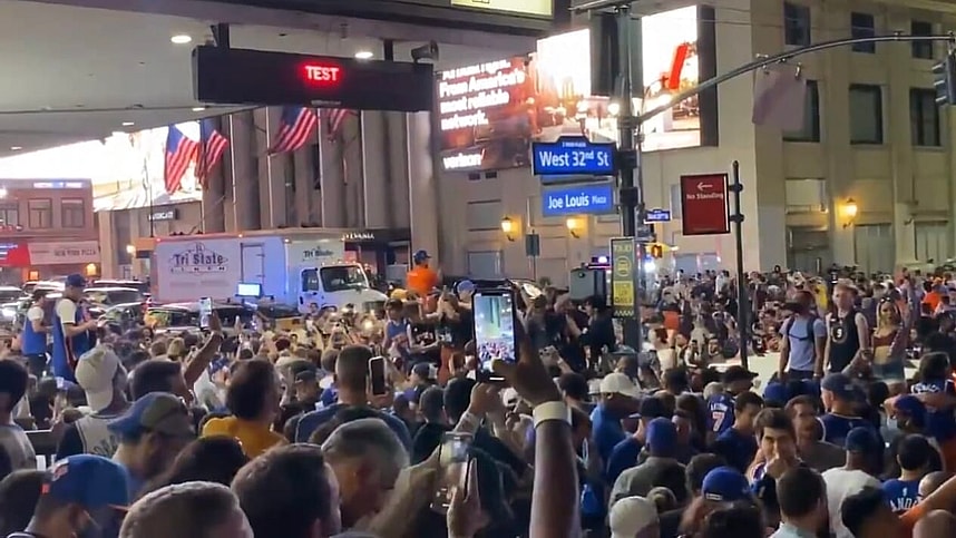 New York fans filled the streets around The Garden to celebrate the first Knicks playoff victory in eight years — exactly 2,932 days — or since May 16, 2013, when they beat the Pacers in Game 5 of the Eastern Conference semifinals.