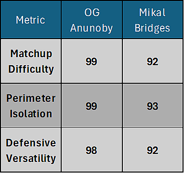 OG Anunoby will probably remain the primary defensive option for this team, but with Bridges as his running mate for stopping the myriad of athletic scorers in this league, they might form the best defensive duo in the league this upcoming season.