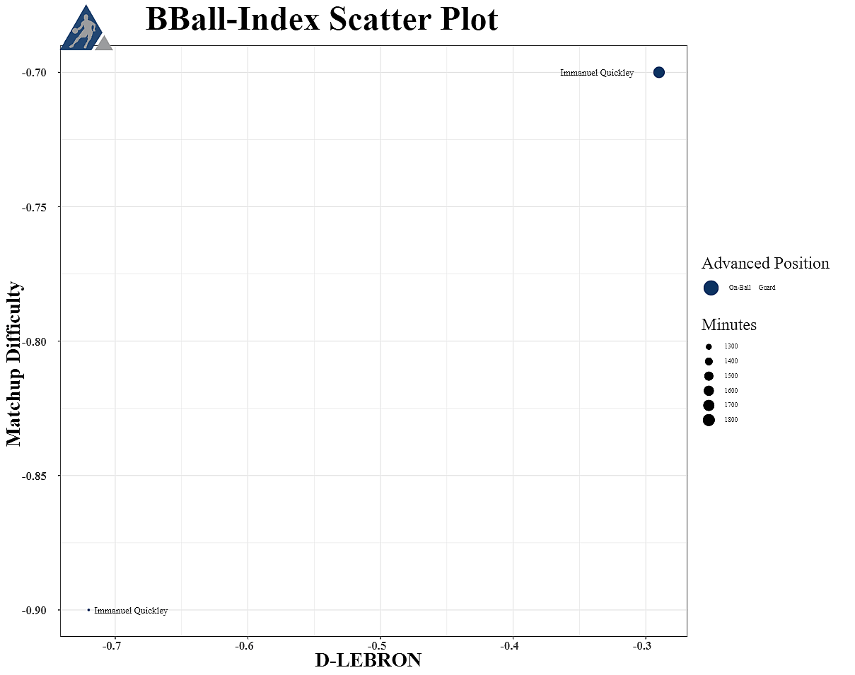 We saw the minutes go up for Quickley, and the defensive improvement was night and day. Quickley wasn’t an elite defender by any means, but he took a massive unexpected leap in his defensive development. Remember, at the time, it was expected that Quickley would develop better defensive instincts that would allow him to be more than a turnstile at the PG position. Instead, he went from well below average to close to league average, which went a long way in his ability to positively impact the game. To add to the improved defensive value, he also took on tougher defensive assignments, adding to his value on the defensive side of the ball.