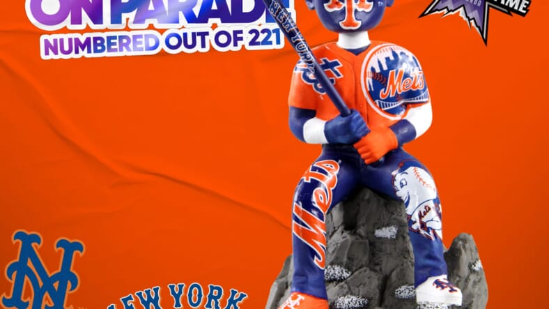 The 2021 MLB All-Star Game is right around the corner, and FOCO has released another collector’s item for New York Mets fans. Their newest bobblehead features a seated figure wearing a uniform and holding a baseball bat. It also has a repeat pattern design with a multi-team logo display across the body and bat of the seated figure. Since the game is at Coors Field this season, the figure is seated on a mountain base with forest accents.