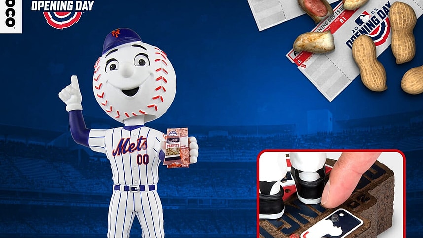Opening Day has finally arrived, and FOCO has New York Mets fans covered once again with an Opening Day bobblehead. The new release features the legendary Mets mascot holding a bag of peanuts and a snack box as he gets ready for game one of the long season.