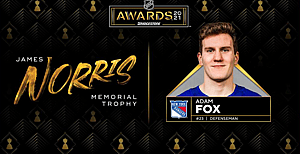 A first-time finalist for the award, Fox is the fourth different Rangers player to win the award and first since Brian Leetch in 1996-97. Doug Harvey (1961-62), Harry Howell (1966-67), and Leetch (also 1991-92) are the others.