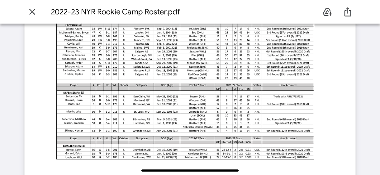 Rookie camp will have 13 forwards, seven defenseman, and three goaltenders. The roster includes three picks from this year’s draft, Adam Sykora, Maxim Barbashev, and Bryce McConnell-Barker, along with Dylan Garand, Brennan Othmann, and Will Cuylle who are coming off a gold medal win in the World Championships last month.