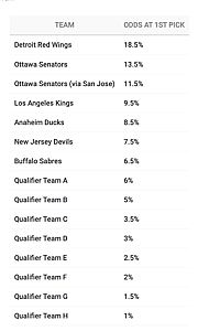 The Draft Lottery will be between the Red Wings, Sharks, Kings, Devils, Ducks, Sabres, and Senators — as well as the eight teams who do not make it through the qualifying round of the modified playoffs.