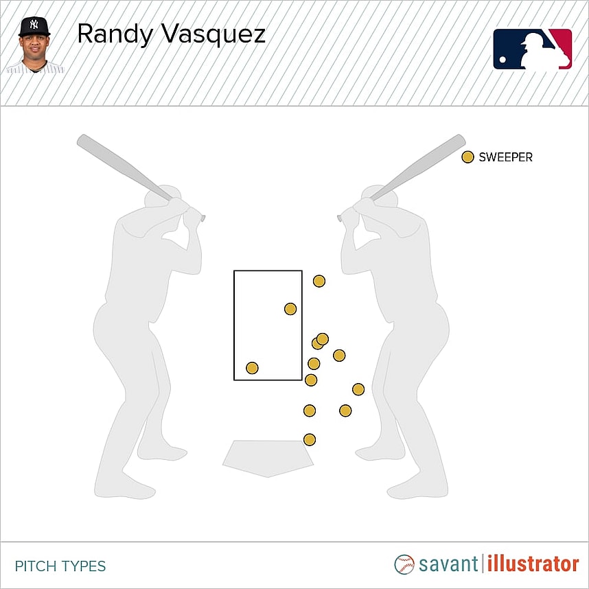 A lot of these pitches are either uncompetitive or hung, and it’s leading to at-bats that don’t result in clean-and-easy strikeouts. Vásquez could benefit from simplifying his pitch mix, as he has three fastball variants, two breaking balls, and a changeup, but the Yankees would have to tinker with that based on the results they see at the Major League level. His stuff is undeniably good, with his changeup grading out as the only below-average pitch in his arsenal per Stuff+, and with the Yankees looking for starting depth, they could plug Vásquez into the rotation or bullpen.