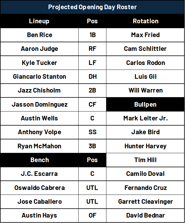 A +12 Fielding Run Value indicates that this group would be solid defensively, with the hope being that Anthony Volpe snaps back into his 2024 defensive form while Jasson Dominguez isn’t a complete disaster out in centerfield.