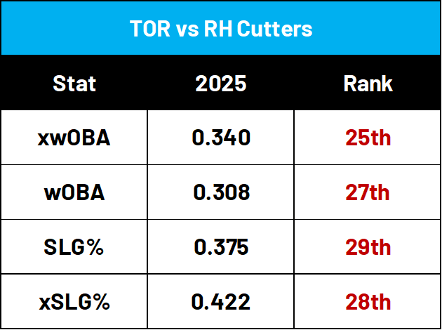 That doesn’t mean that Schlittler can just rely on the four-seamer to get outs, he’ll need to mix-in his secondary pitches as well to keep Toronto guessing all evening, with the cutter being a key pitch in this equation.