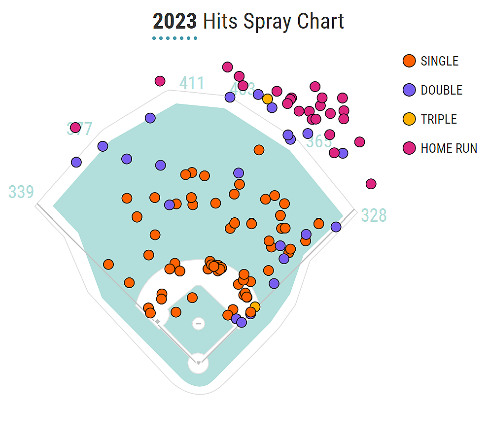 Kepler had a bounceback season in 2023, with a 124 wRC+ slashing .260/.332/.484 with 24 home runs. When looking at MLB’s statcast, his numbers jump out as a left-handed bat that can thrive in Yankee Stadium, with a 12.2% Barrel Rate, in the 89th percentile of exit velocity, and four more expected home runs in Yankee stadium according to statcast. Kepler also had a 169 wRC+ at home against righties and pulled almost half his batted balls.