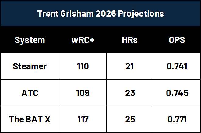 Tack on a high in-zone contact rate to go with the elite batted ball data, and you can see why projections buy into Grisham to remain an above-average hitter in 2026.