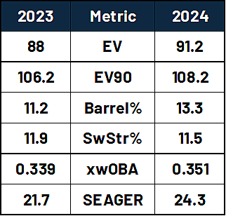 In 2023 the concerns with his .217 AVG and .318 OBP could be quelled by pointing out that he had a .205 BABIP (Batting Average on Balls in Play) compared to his career average of .274, but in 2024 his BABIP was .276. His decreasing line drive rates and increasing groundball rates are of great concern, but if the Yankees can get his swing path back on track he could go back to smashing 40+ home runs with a wRC+ in the 130-140 range. Even if you could get a 125 wRC+, it would be a huge help for an offense that lost Juan Soto, but there are more than just offensive concerns here.