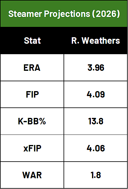 Without any improvements to his mix, Ryan Weathers is already projected to be a no. 3-4 starter for the upcoming 2026 season according to Steamer.