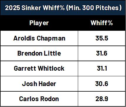 Eno Sarris & Max Bay’s Stuff+ model (which is available on FanGraphs) graded him out at a 103 in 2025, which is better than the league-average mark of 98 for starting pitchers.