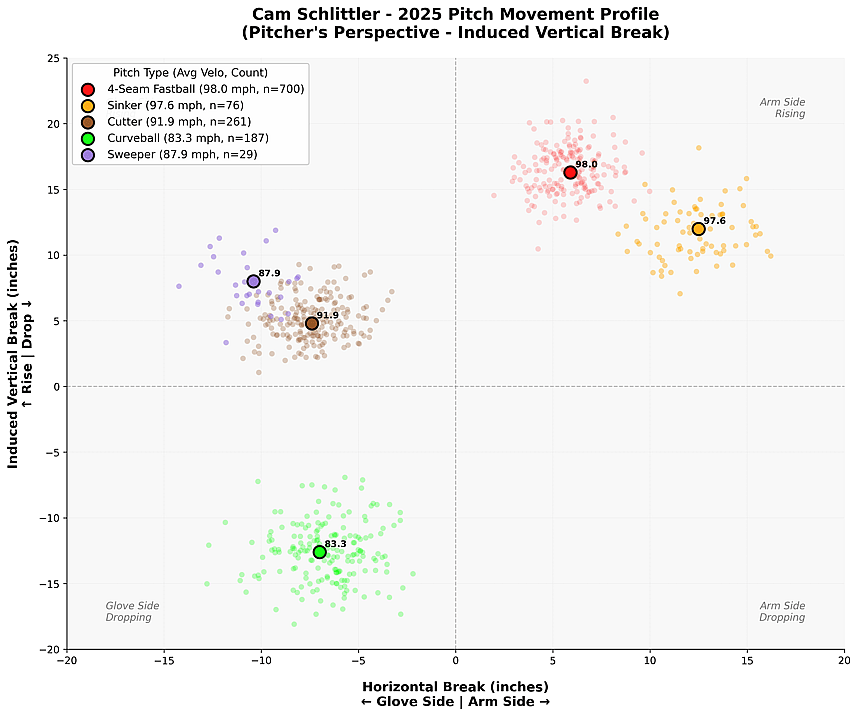 Cam Schlittler does not have anything arm-side that drops, his two-seamer is more of a running fastball than it is a sinker with some depth.