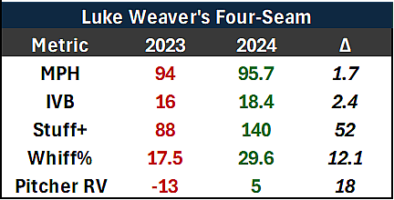 2023 felt like rock-bottom though, as among the 102 pitchers to throw at least 120 innings in 2023, Luke Weaver had the worst ERA (6.40) and third-worst HR/9 (2.11). The Yankees would get three solid starts out of him, which gave them enough reason to bring him back on a one-year deal at $2 million with a club option for 2025. Fast-forward to now, and the once abysmal starter is the top dog in a Yankees’ bullpen that’s finding its form.
