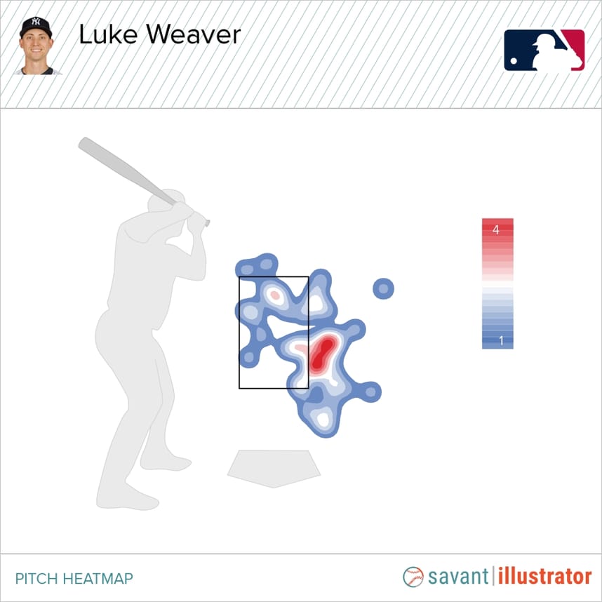 Paired with that heater which gained vertical ride, you have a combination of pitches that generate whiffs and chases consistently, something that has greatly helped Luke Weaver in high-leverage situations. The equalizer is his cutter, a pitch that I believe he’s tinkering with to allow it to have some slider-like tendencies, which Aaron Boone hinted at recently. He mentioned that Weaver had been tinkering with the shape of his cutter, and we’ve seen him try to throw it down and away to right-handed batters since the start of August: