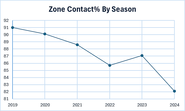 Jorge Polanco’s Zone Contact rates declined from 2019-2022, but it came with improved game power, a conscious change made to ensure that he could keep doing damage on contact. 2023 was his crescendo; the power-hitting infielder saw his Zone Contact% tick up again while posting a .427 xwOBACON, a metric that measures how often a player does damage on contact, and it would be a career-best mark for him.