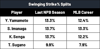 As for Sugano, he entered MLB as a 35-year-old, but even their SwStr% numbers decreased by between 2-3%, and in the case of Imai, he’ll come over during his age-28 season with a 15.4% SwStr%.