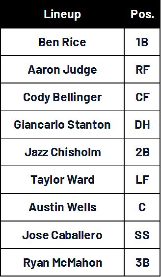 Austin Wells is a big part of this lineup because he has 20 HR power, but if he can get back to working walks the way he did in 2024, he could be a big cog for the offense.