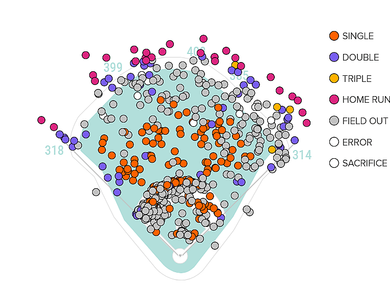 According to a study done by Baseball Prospectus back in 2016, Exit Velocity begins to stabilize around 50 batted balls, and while there are certainly exceptions to this, the trends are pretty ugly for Rizzo. His Average Exit Velocity ranks in the 26th Percentile (87 MPH) and the Hard Hit% ranks in the 32nd Percentile (34.3%), resulting in a harsh decline that has seen him struggle to do much of anything at the plate.