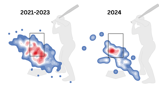 This would seem like the key change, but improving the quality of a pitch can be borderline useless if said pitcher doesn’t locate it well. Striking out a hitter requires a pitch to both be excellent in velocity and shape while also being placed in a part of the zone where they’ll likely swing and miss. The Yankees aren’t just seeing an improved slider in terms of movement, but also in terms of location to left-handed batters.