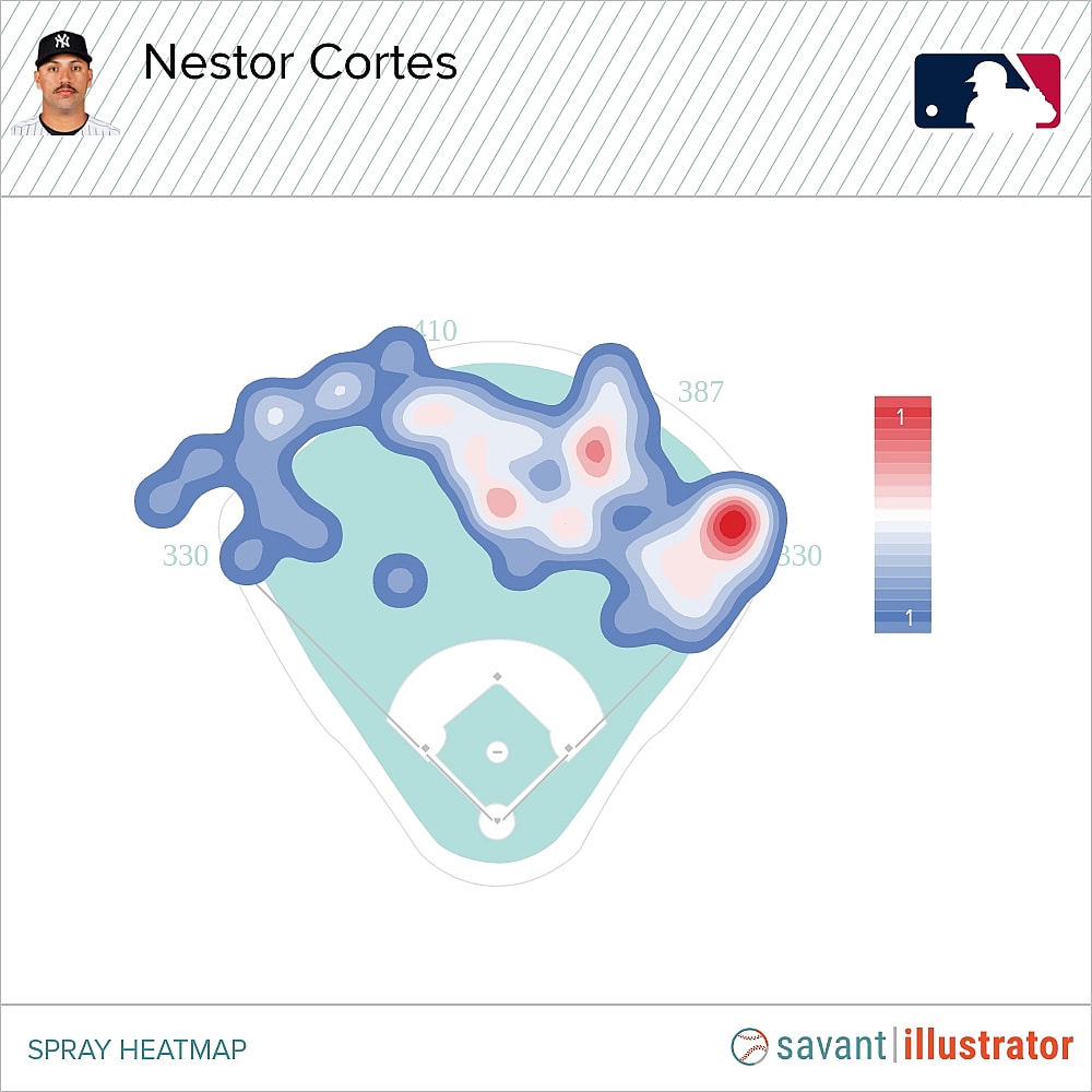 Outside of being a strikeout pitch for Nestor (31.3% K%), it also generates lazy flyballs that cause Cortes to have a low BABIP against (.232). Cutters also tend to run low BABIPs (.291 league-wide BABIP), thus, batters can rarely string together hits against Cortes.