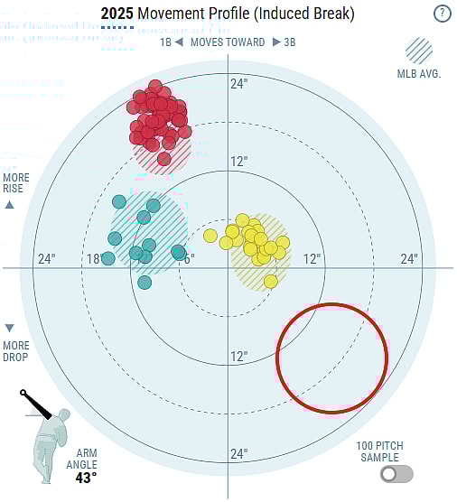 He threw his fastball over 63% of the time during the 2025 season which goes against the growing trend of pitchers who tend to avoid relying a lot on just one fastball shape.