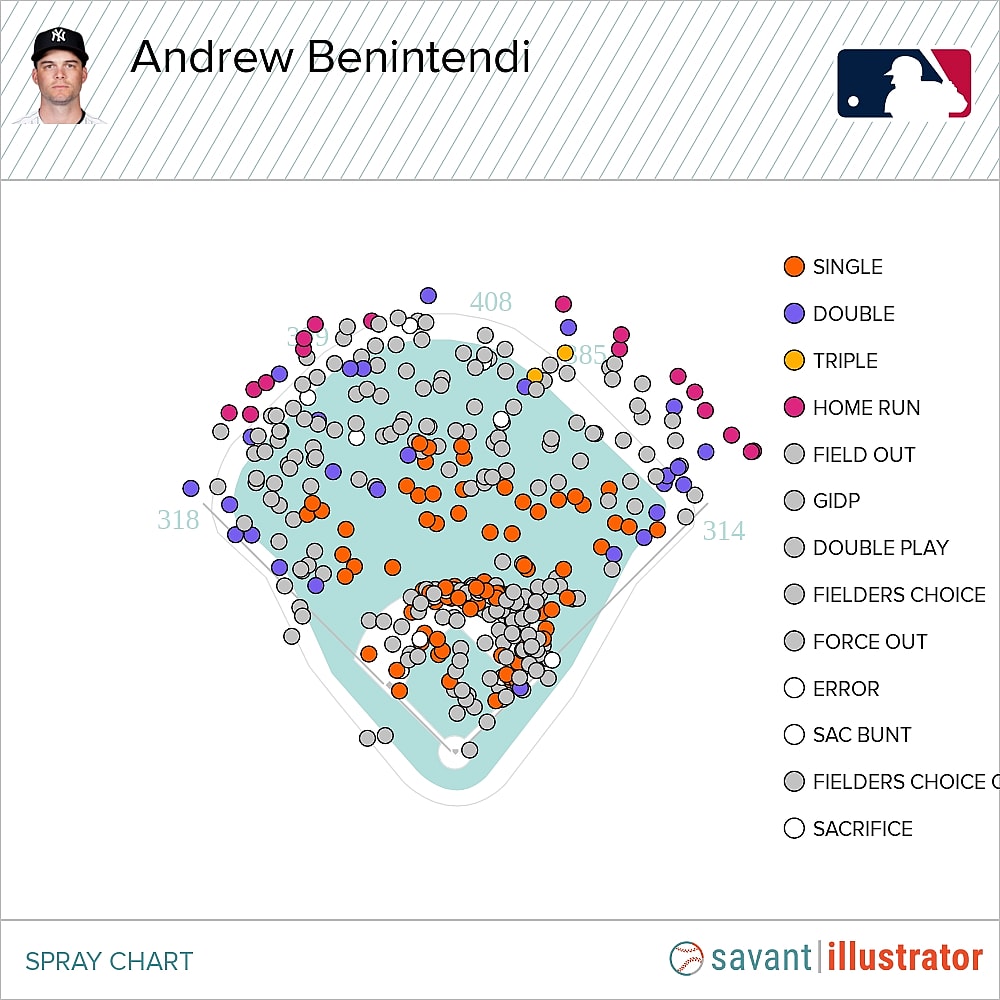 It sort of goes against what I mentioned about his fit at the leadoff spot, but the Yankees and Benintendi should find a healthy medium for that approach that allows him to remain a good leadoff threat, but instead of 5 HRs, maybe he can hit 10-15.