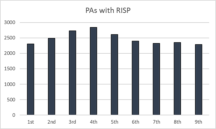 The Yankees may still be searching for their consistent leadoff hitter, but the middle of the lineup will likely remain Judge-Rizzo-Stanton. Candelario as the 5th hitter in that lineup, gives them a consistent contact bat with good power and a platoon advantage against whoever they’re facing. When we look at the importance of contact in the 5th spot, let’s look at the most frequent PAs with RISP: