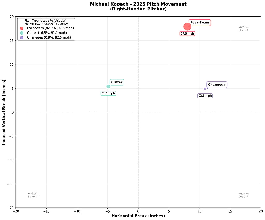 Kopech throws hard and gets ton of ride on his fastball, which he throws a ton due to its effectiveness when he attacks the zone which can be an issue for him.