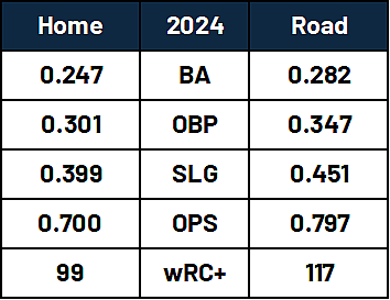 Wrigley Field has the fifth-worst wOBA for left-handed pulled flyballs whereas Yankee Stadium has the second-best wOBA for those batted balls over the last three seasons. This showed in Bellinger’s home-road splits, as he was a dramatically different hitter when playing away from Chicago in 2024: