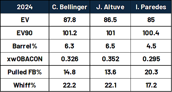 Cody Bellinger doesn’t have the damage rates that Altuve does or the pull rates than Paredes has, but he blends all of those skills decently well to have the kind of approach that can mimic what those two infielders have done. All of them share the distinction of not hitting the ball hard while pulling the ball in the air, and both Altuve and Paredes have proven that it can generate consistent game power, but what allowed them to outhit Bellinger in 2024?