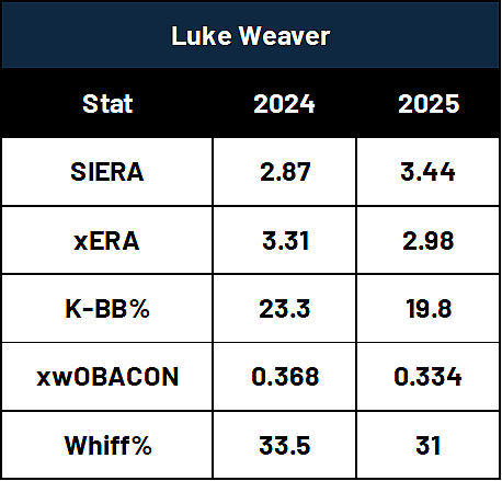Luke Weaver’s command and polish on the mound wasn’t where it was in 2024, and despite that he still had all the makings of a strong relief pitcher.