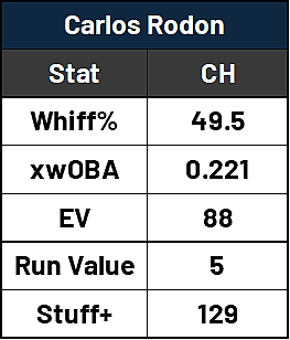 Carlos Rodon’s changeup was arguably his best pitch this past season, as hitters couldn’t make much contact or generate much power against the pitch all season.