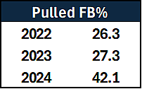 A spike in pulled flyball rate has come with more game power, as Trevino is on-pace to hit 17 home runs if he were to get as many trips to the plate as he did in 2022. While I think he’ll slow down offensively, this style of hitting can result in a player overperforming their batted ball data, and for hitters with below-average raw power, pulling the ball in the air is the most consistent way to generate power at the plate.