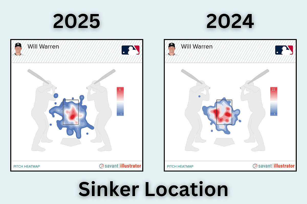 Will Warren’s sinker hasn’t changed much from a movement or velocity standpoint, but he is using it differently compared to his 2024 season.