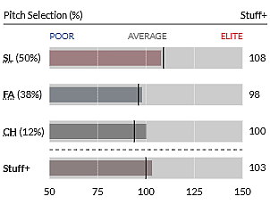 Brent Headrick releases the ball from a wider release point than most lefties with a lower arm angle, as his fastball gets a good amount of vertical ride and his slider has a good amount of vertical drop. His changeup is an underrated weapon as well thanks to how much drop and fade he gets on that pitch, and it’s why he has a career 104 Stuff+ with all of his pitches grading out as average or above average.