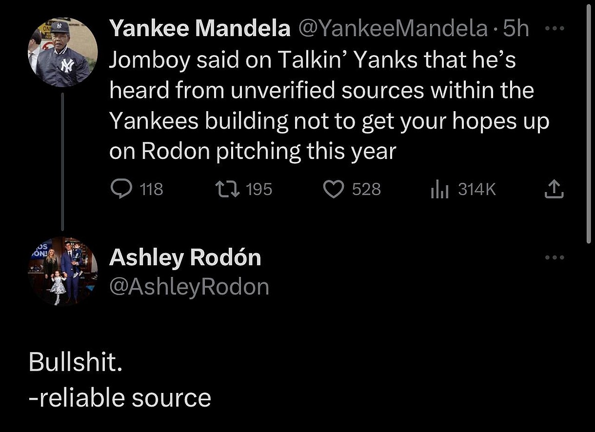 A report suggested that Rodon might miss the entire 2023 season, prompting his wife to defend him on Twitter.
