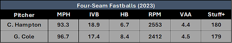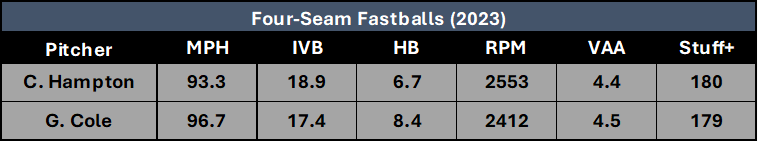 That just leaves one question: how well does Chase Hampton’s fastball stack up against Gerrit Cole’s?