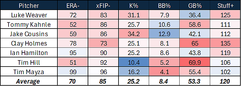 The Yankees have been able to trim the fat off of their roster as they’ve shrunk their pitching staff to just 11 pitchers, and each arm brings something different to the table. Whether it’s Tim Hill’s submarine sinker, Ian Hamilton’s slambio, or Jake Cousins’ wicked slider, they all have distinct movement profiles that allow them to have success. Clay Holmes is on when he’s able to power sinkers in-zone and get whiffs or groundballs, and if he’s able to establish that pitch it makes his secondaries even better.